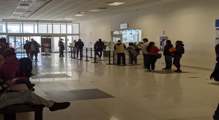 Desde las primeras horas de este viernes, una larga fila se ha formado a las afueras de varias de las dependencias gubernamentales en Pueblito Mexicano, ubicado en Ciudad Juárez.