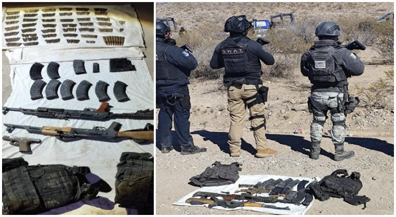 Confirmaron que tras la operación federal y estatal en Coyame del Sotol decomisaron dos armas tipo “cuerno de chivo”, una corta, cartuchos, cargadores y chalecos tácticos. No se reportan detenidos.