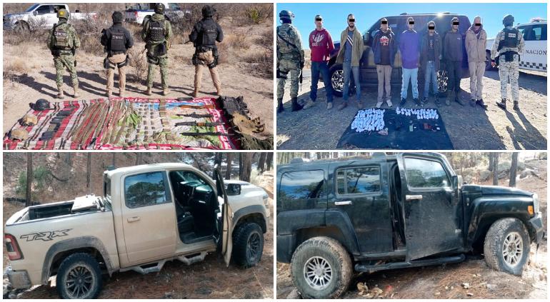 La operación en Nuevo Casas Grandes de fuerzas federales y estatales detuvo a siete sujetos con droga; y en un evento diferente decomisaron armas y dos vehículos de los cuales uno estaba blindado.