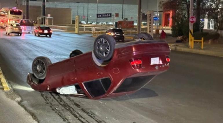 La conductora de un Volkswagen Jetta perdió el control y volcó tras bajar el puente del Trébol, ubicado en la avenida Tecnológico.