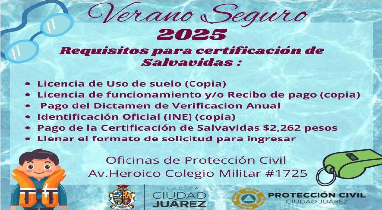 Para quienes deseen certificarse como salvavidas, deben llevar los siguientes documentos a las oficinas de Protección Civil en Heroico Colegio Militar: