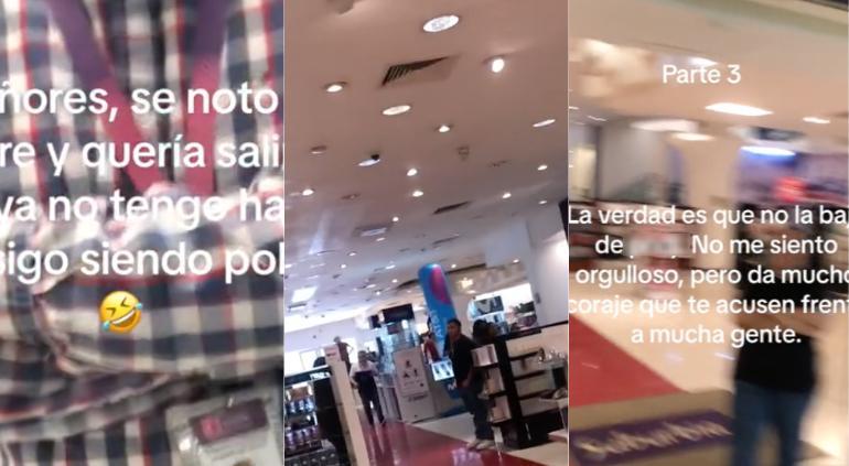 En el video, la mujer, quien rechazó identificarse, aseguraba que vio a través de las cámaras de seguridad cómo el joven tomó unos tenis y les quitó el sensor para luego colocarlos en su mochila, por lo que le exigía que la abriera para revisarla.