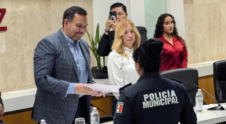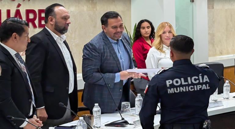 En sesión de Cabildo, los integrantes del Honorable Ayuntamiento reconocieron a los seis mejores elementos de la Secretaría de Seguridad Pública Municipal; cada uno recibió un premio de 50 mil pesos.