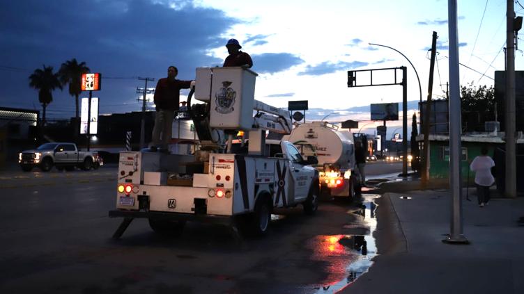 Personal de Servicios Públicos realizó anoche la Cruzada Nocturna, en esta ocasión en el corredor comercial del bulevar Manuel Gómez Morín.