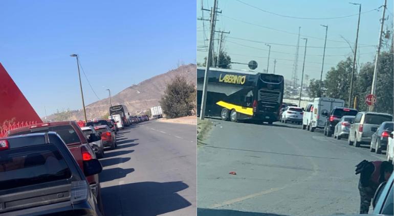 En las imágenes se puede ver cómo el autobús de Grupo Laberinto se metió a la fila para cruzar a El Paso, Texas en el Puente Libre.