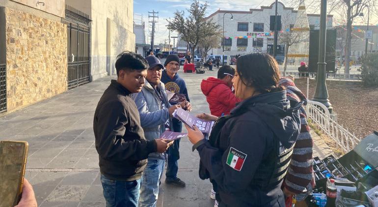 Policías municipales se acercaron a ciudadanos, a quienes entregaron trípticos con números a los que pueden comunicarse con la autoridad, adicional al 911.