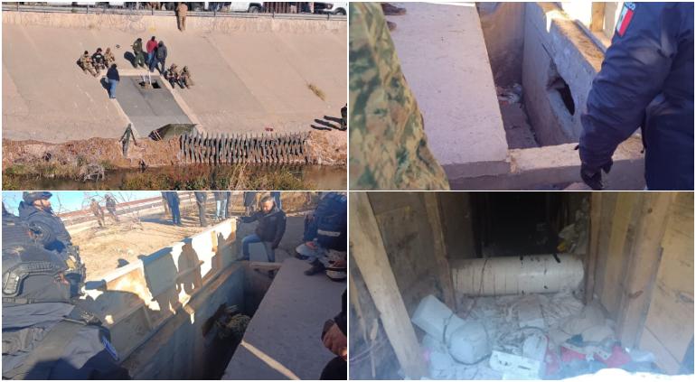 Fuerzas federales y estatales “reventaron” un túnel clandestino usado para cruzar a El Paso desde el río Bravo por la plaza La Mexicanidad, más conocida “La X” de Ciudad Juárez.