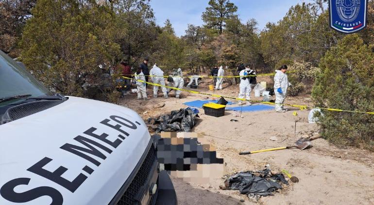Tras cuatro días de trabajo en el predio “El Willy”, ubicado en las inmediaciones del Ejido Ignacio Zaragoza, municipio de Casas Grandes, informaron sobre el hallazgo de 56 cuerpos.