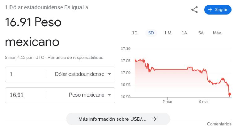 El “súper peso” volvió y se mantiene firme este 5 de marzo, a la par que el dólar continuó su caída, gracias a políticos financieros provenientes de Estados Unidos. También el euro tropezó.