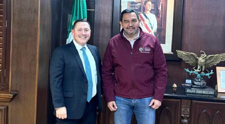 Ricardo Aguirre, nuevo presidente de notarios del Distrito Bravos, visitó al alcalde de Ciudad Juárez, Cruz Pérez Cuéllar.
