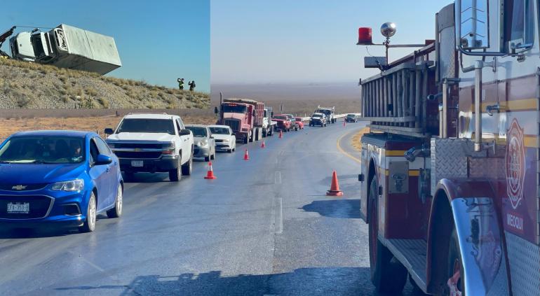 Una volcadura ocurrida en el kilómetro 180 de la carretera Delicias- Chihuahua, generó congestionamiento vehicular.