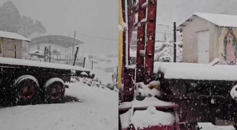 Habitantes de la Ciénega de la Vaca en Guanaceví, Durango captaron la intensa nevada que cayó este sábado.
