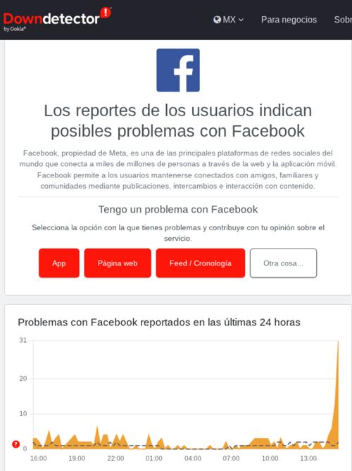 Alrededor de las 3:30 pm comenzaron a registrar fallas en Facebook, para iniciar sesión, para ver el 'feed' y para cargar la aplicación.