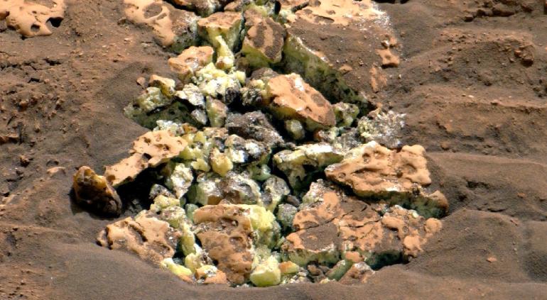 Los científicos, utilizando instrumentos a bordo del rover, confirmaron que los cristales eran de azufre elemental.