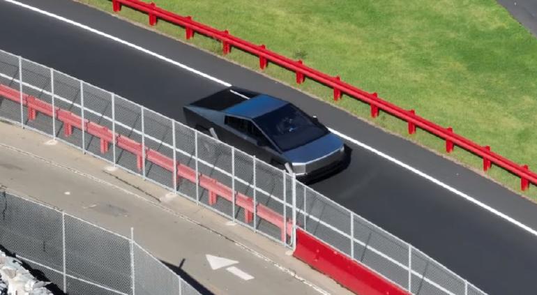 El Cybertruck visto en la pista de pruebas de Tesla también presentó algunas otras alteraciones notables del prototipo original, incluido un frente más redondo y menos angular y un nuevo conjunto de faros debajo de la barra de luces orientada hacia adelante.