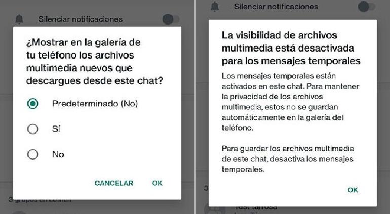La aplicación de WhatsApp como parte de la nueva actualización ya no permitirá la descarga automática de fotos y video en chats temporales o en mensajes que desaparecen.